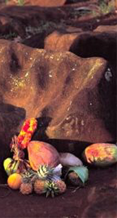 The traditional birth site of the Lo Ali’i was the stone called Kukaniloko at Wahiawa. Ali'i born at Kukaniloko were deemed fitting rulers to govern their people. The first to be born at Kukaniloko was Kapawa. In our Kekoolani genealogies, this son is called Heleipawa. It was his parents who began the tradition followed by many of Oahu's highest-ranking kapu chiefs. |